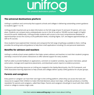 Ms Stockman also organises work experience programme for Y10s, careers days, mock interviews, visits to careers fairs and visits from employers and experts to help inform our students’ choices.